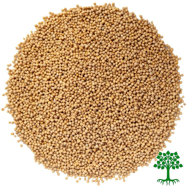 Семена горчицы мелкие, шариковидные. В зависимости от вида, могут быть чёрно-сизые, коричневые или золотистые.